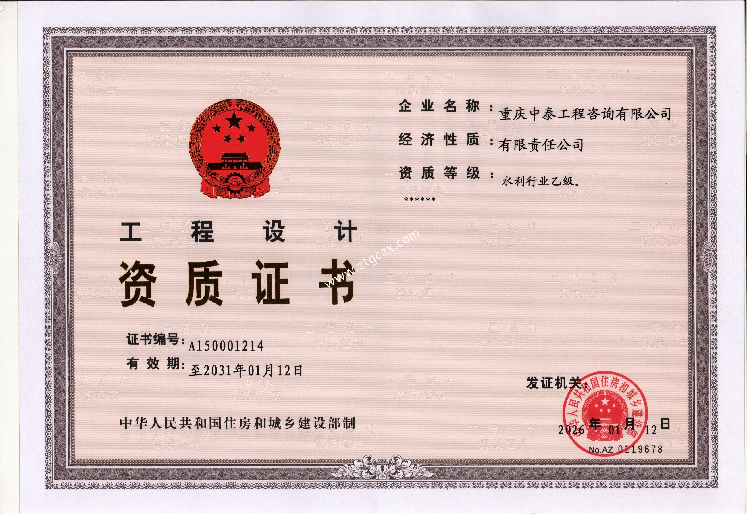 重慶中泰工程咨詢有限公司設(shè)計(jì)資質(zhì)