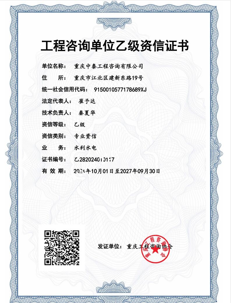 重慶中泰工程咨詢有限公司咨詢資質(zhì)